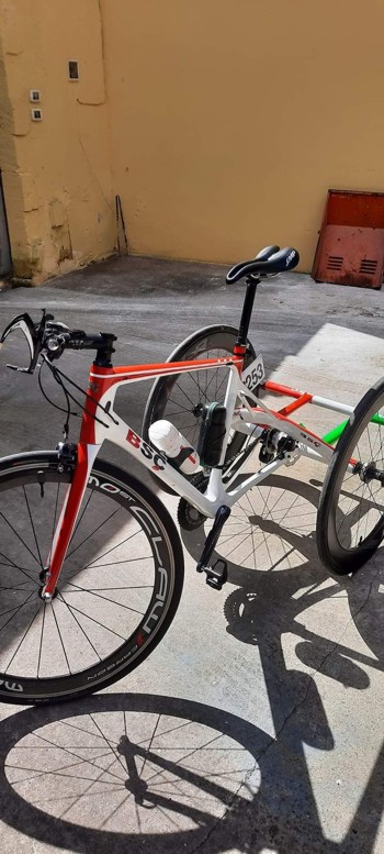 «E’ fermo da un pò di anni» fa presente Leonardo Melle. «Proviamo a mettere tutto a posto. Dovremo rinunciare alla tecnologia, non disponendo del cambio elettronico posteriore e automatico anteriore, dei freni a disco etc etc. Comunque mi preparo per un importante evento: quello della gara internazionale del 9 e del 10 aprile a Marina di Massa. Saranno 13 gli atleti con i tricicli in gara, di cui 7 nella categoria MT1 e 6 nella categoria MT2. Sono gare molto importanti, che ci permettono di arrivare a una buona forma fisica per affrontare nel migliore dei modi il campionato italiano, sia a cronometro che in linea».