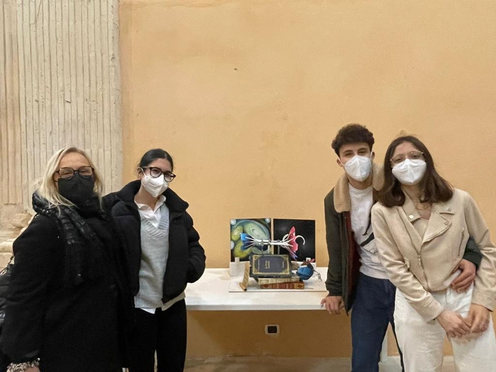 opere d’arte in gara: il gruppo “I FIGLI DI THANOS” degli studenti Laura Birtolo, Davide Lomartire e Antonella Pichierri, che presentano l’opera “Trasumanar: oltre i confini delle tre dimensioni”; il gruppo “CERVELLI IN FUGA” degli studenti Mattia Decataldo, Valerio Pio Lonoce e Marco Stasi, che espongono “La scatola cromatica”; il gruppo “UINCS” degli allievi Sara De Luca, Francesca Palumbo e Alessandra Resta con l’idea-progetto “Hermafroditus”; il gruppo: “GLI ASTROLOGI” dei partecipanti Giuseppe De Pascale, Cosimo Lacaita e Stefano Saponaro, artefici dell’opera “Il volto della scienza”.