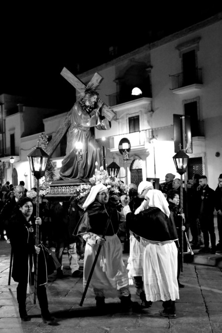 Riprende oggi, dopo due anni di interruzione a causa della pandemia, l’antico rito del Venerdì Santo. Per l’occasione riproponiamo l’articolo dell’avv. Giuseppe Pio Capogrosso, corredato da belle istantanee della processione del 2016 di Cosimo Dimonopoli