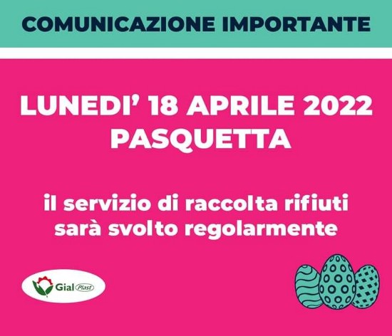 Domani mattina il servizio di raccolta dei rifiuti sarà svolto regolarmente. A comunicarlo è l’azienda Gial Plast.