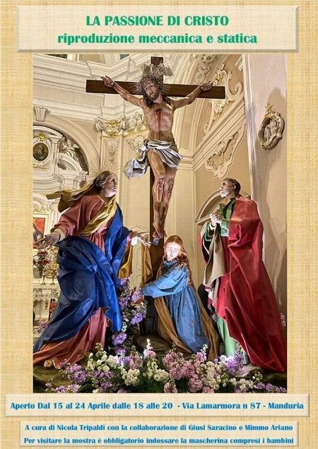 Dal bellissimo e suggestivo Presepe alla novità assoluta: la prima edizione della riproduzione meccanica e statica della Passione di Cristo. A realizzarla Nicola Tripaldi, con la collaborazione di Giusi Saracino e Mimmo Ariano. La mostra pasquale è visitabile ancora domani (sabato) e domenica in via Lamarmora 87, dalle 18 alle 20.