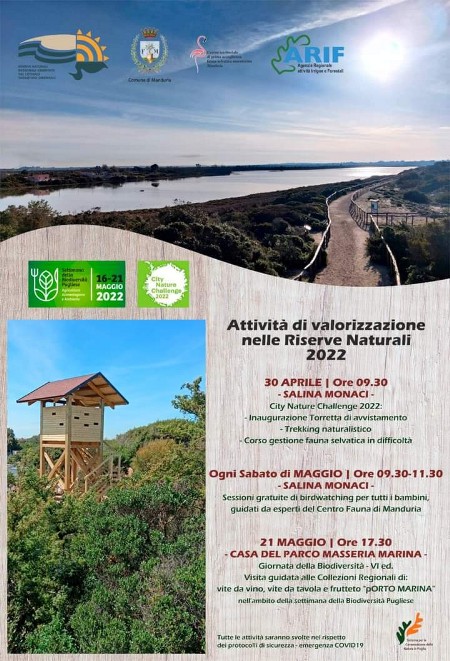 Dopo il successo dell’edizione del 2021, le Riserve naturali litorale tarantino orientale ripropongono questo appuntamento. Sabato 30 aprile il Cluster Biodiversità Italia - City Nature Challenge darà avvio a numerose attività di sensibilizzazione territoriale. Fra queste un trekking naturalistico e un corso di gestione della fauna selvatica in difficoltà.