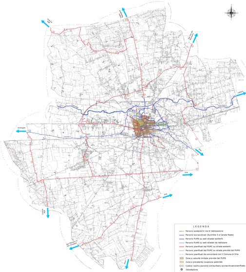 Lo scopo principale è definire una rete capace di congiungere il centro, le periferie e le contrade, sino a collegarsi con i tracciati ciclopedonali regionali ed europei. Lungo i percorsi saranno presenti punti di sosta sotto forma di bici grill integrati con le cerniere di mobilità previste dal PUMS per passare dall’auto privata al mezzo sostenibile, anche con l’impiego del bike sharing.