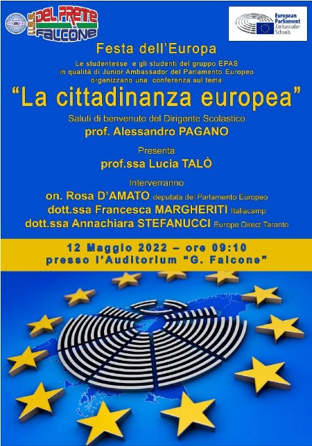 Il gruppo EPAS (European Parlament Ambasciador Schools) e tutta la comunità scolastica si preparano a celebrare la Festa dell’Europa e l’ingresso ufficiale nell'elenco delle Scuole Ambasciatrici del Parlamento europeo con un convegno che si terrà domani mattina (giovedì), alle 9,10, nell’auditorium “Falcone” della scuola.