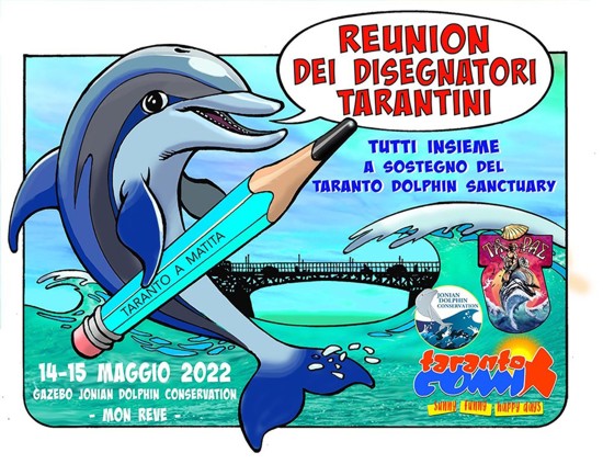 Già nello scorso dicembre Sal Velluto, artista d’origine tarantina, primo tra gli italiani a sfondare per grosse case editrici americane di fumetti come Marvel e DC, fece dono alla JDC, per il progetto “Taranto Dolphin Sanctuary”, tutti i diritti d’uso di un’epica ed iconica immagine rappresentante Taras sul delfino rampante: questa stessa immagine sarà disponibile, in anteprima stampata bel merchandising JDC in vendita preso il Gazebo della Jonian Dolphin, a “Taranto Comix”.