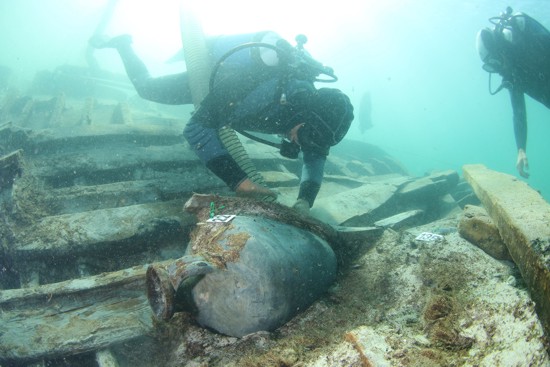 4 - scavo di un’anfora del carico del relitto TSS1