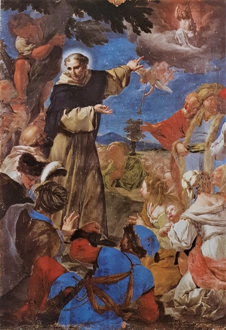 In attesa che nuove sollecitazioni arrivino dalla serata di sabato, possiamo dire che «La ‘Predica di San Vincenzo Ferreri’ rappresenta il veicolo visivo attraverso il quale si percepisce la nuova ventata degli ideali pittorici più all’avanguardia nella capitale. [Agli inizi del Settecento] Roma è il centro del mondo religioso e il cardinal Ferrara ne è un eminente rappresentante, orgoglio e vanto dei suoi concittadini di Casalnuovo» (F. Rocco, p. 300). La biblioteca ‘Marco Gatti’ ne custodisce nella saletta studio un pregevole ritratto (in foto).