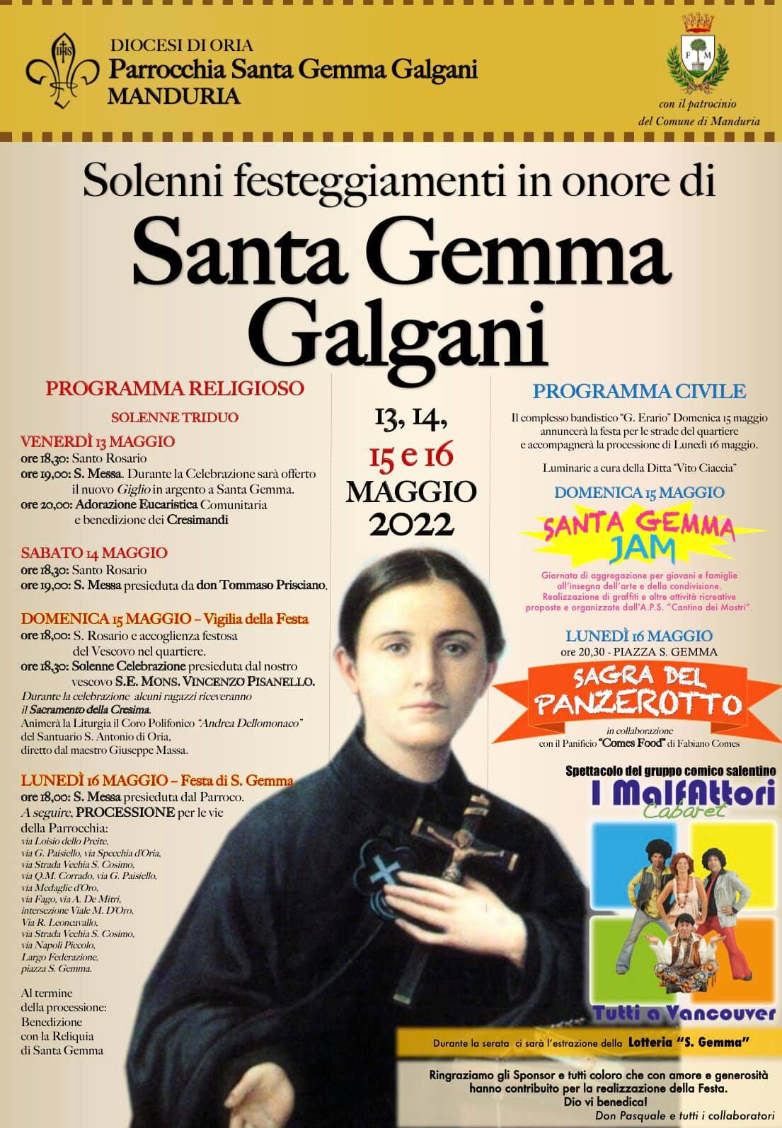 LUNEDI’ 16 MAGGIO – Festa di Santa Gemma