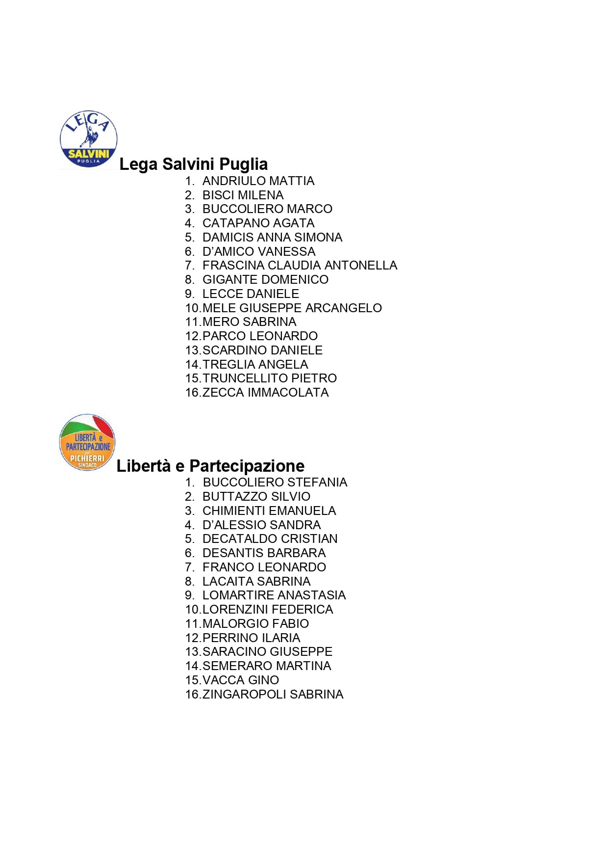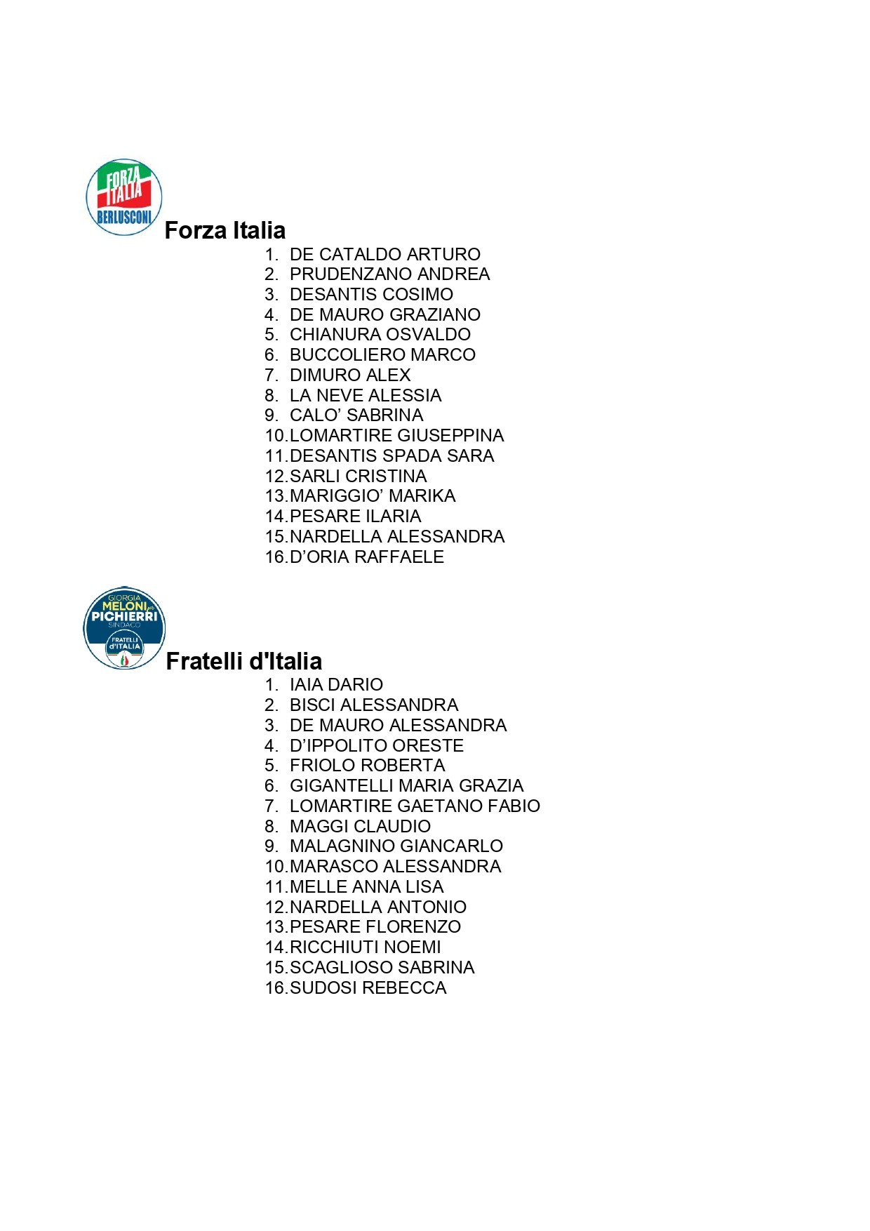 Sette liste (Gruppo Politico Autonomo), Impegno Civico, Forza Italia, Fratelli d’Italia, Lega, Libertà e Partecipazione e Progetto Comune) per un totale di 112 candidati a consigliere
