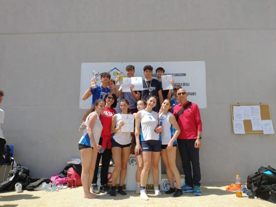 Per il secondo anno consecutivo, dopo la pausa forzata dovuta alla pandemia, il liceo “De Sanctis Galilei” ha alzato il trofeo di campione provinciale maschile ben due volte, sotto la guida atletica della prof.ssa Marilena Colucci, sia nella categoria Allievi, rappresentata dagli studenti Andrea Lomartire 2AS, Cosma Depascale e Lorenzo Sammarco della classe 2AS e sia nella categoria Juniores, quest’ultima costituita dagli studenti Andrea Cutrignelli 4BC, Marco Duggento 4DS e Marco Martellotti 4CS.