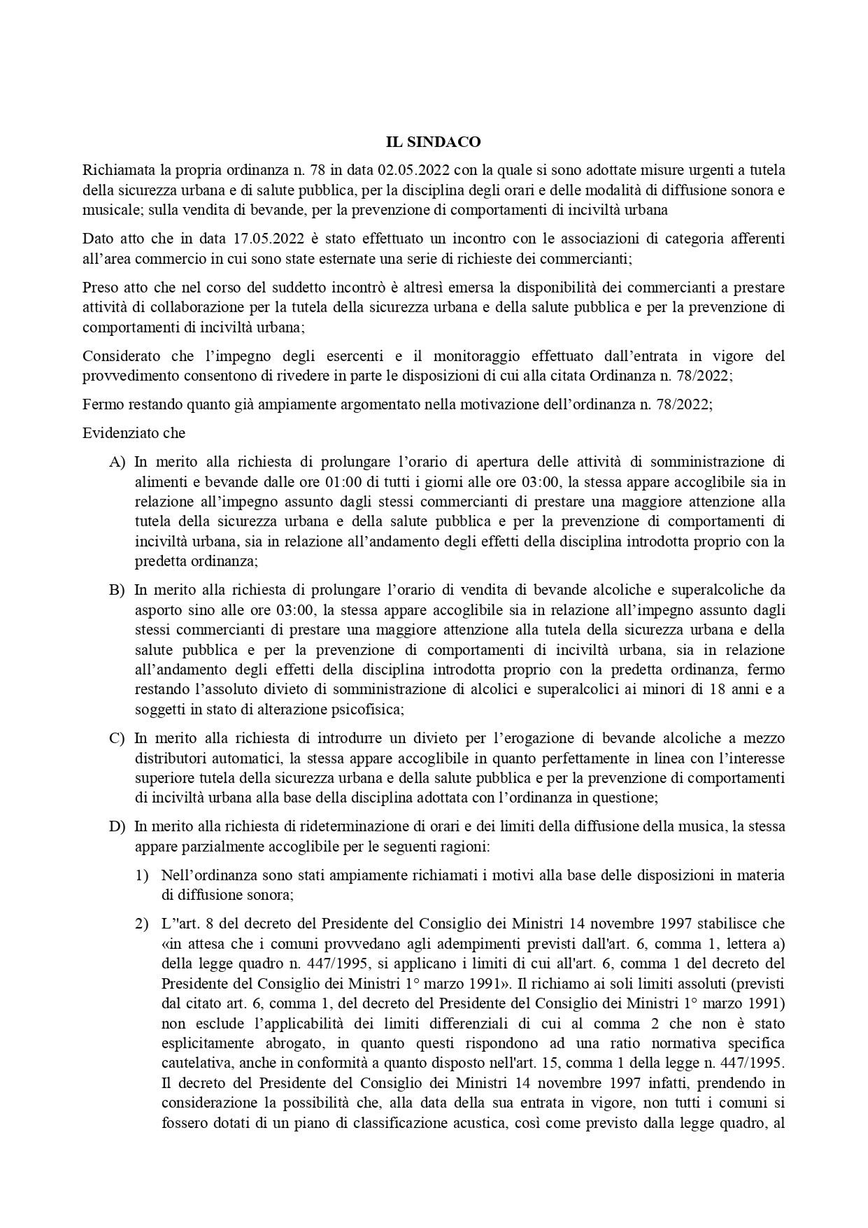 Il sindaco Gregorio Pecoraro ha firmato una nuova ordinanza sulla movida. Dopo l’incontro con i rappresentanti di alcune associazioni di categoria, vengono accolte alcune delle richieste (in particolare quelle sulla vendita di alcolici e quindi sulla chiusura delle attività) e, dunque, attraverso una nuova ordinanza, sono stati eliminati alcuni divieti.
