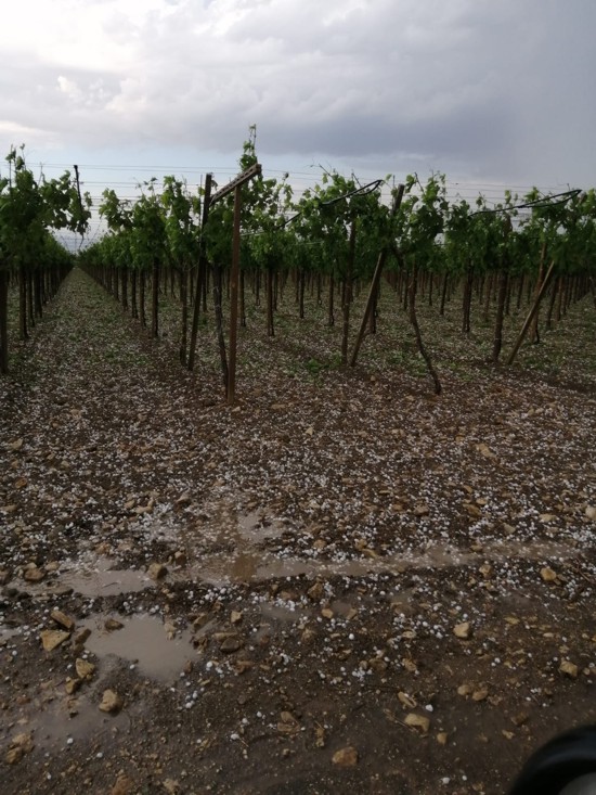 VIGNETI - Gli effetti della grandinata sono drammaticamente evidenti nei vigneti, con una buona parte del futuro raccolto già strappato dalle piante e finito a terra a marcire e seccare. I chicchi di ghiaccio hanno colpito proprio nel periodo più delicato per lo sviluppo dell’uva che avrebbe preso pienamente forma nelle prossime settimane.