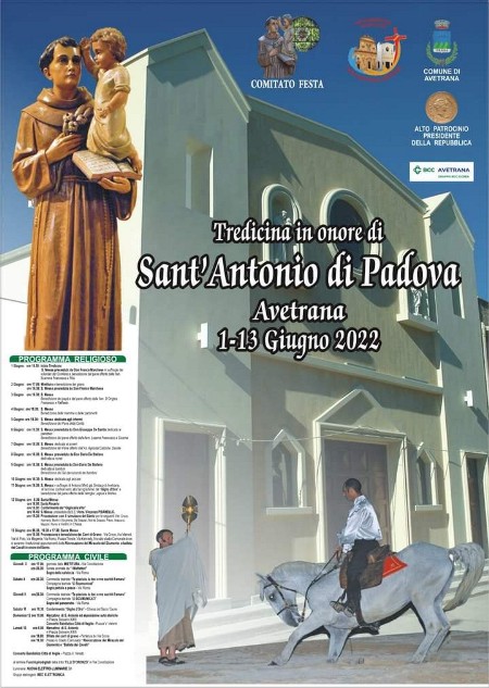 Da domani il via ai festeggiamenti in onore di S. Antonio. Un periodo molto intenso e atteso da tutta la comunità avetranese, caratterizzato da riti religiosi e da riti che affondano le radici nella tradizione e nella cultura contadina della cittadina.
