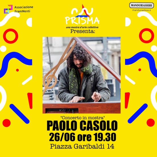 Domani (domenica), a partire dalle ore 19,30, l’associazione Frammenti presenta “Concerto in mostra” con l’esibizione inedita del compositore Paolo Casolo, nella proprietà privata che si affaccia su piazza Garibaldi, al civico 14, già sede della mostra “Prisma”. L’evento è gratuito e arricchito da una degustazione.