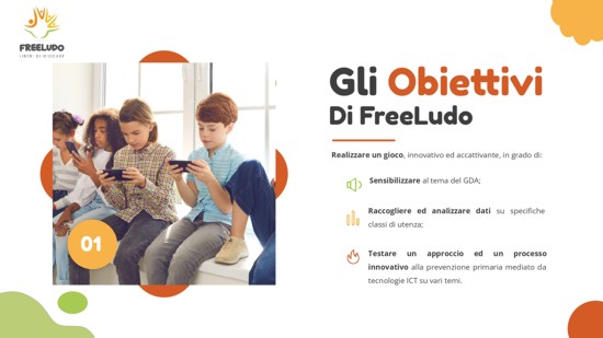 “FreeLudo Liberi di giocare” mira per questo a realizzare strumenti e metodi innovativi e accattivanti per contrastare le ludopatie, sensibilizzare sui rischi delle dipendenze dal gioco d’azzardo e raccogliere e analizzare dati, nel rispetto della privacy dei minori, per comprendere meglio l’incidenza del fenomeno sul territorio. Grazie al lavoro di un team multidisciplinare composto da due psicologhe, due assistenti sociali, una sociologa e una educatrice e con il supporto di una società esterna specializzata, è stata realizzata una piattaforma di gioco, fruibile da computer e da tablet e smartphone: un semplice gioco virtuale che vede come protagonista un personaggio di nome Ludo che, nel suo percorso, incorre in diverse domande che stimolano a riflettere sui migliori comportamenti da adottare sul tema del gioco d’azzardo.
