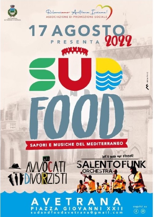 Segnaliamo inoltre la prima manifestazione di promozione territoriale che ci vedrà impegnati il 17 agosto in Avetrana. “Sud and Food” è infatti una manifestazione estiva che vedrà la partecipazione degli “Avvocati Divorzisti” e della “Salento Funk Orchestra”, nonché dei commercianti avetranesi».