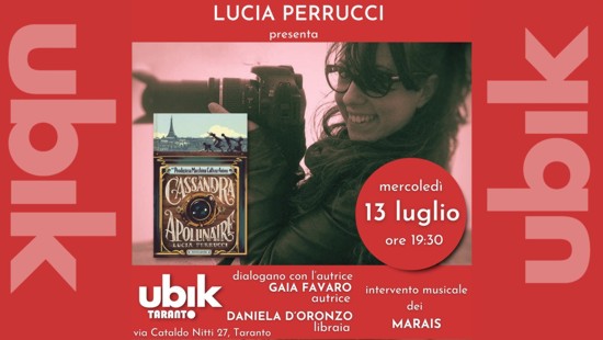 Questa sera, alle 19,30, la scrittrice Lucia Perrucci sarà ospite dalla libreria Ubik di Taranto per presentare il suo libro “La prodigiosa macchina cattura anime di Cassandra Apollinaire”.
