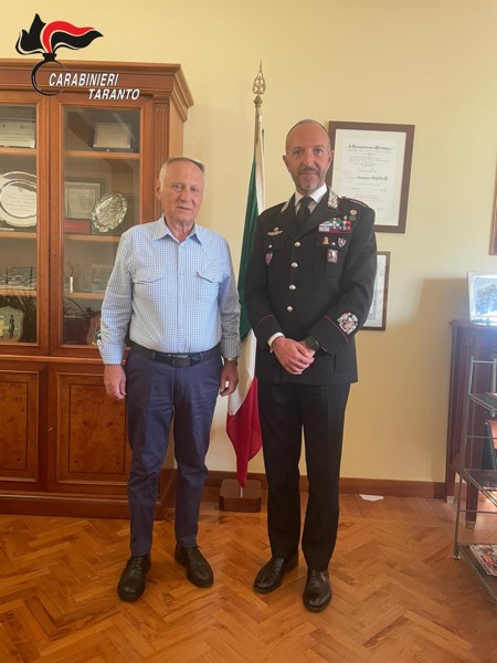 Particolarmente toccante è stato il momento in cui il Comandante Provinciale dei Carabinieri di Taranto, Colonnello Gaspare Giardelli, ha voluto personalmente dare la tanto attesa notizia al signor Sgarrino che, quasi incredulo, a stento è riuscito a trattenere le lacrime (l’incontro nella foto in basso). Sciolta la tensione emotiva, il signor Ennio si è trattenuto con il Comandante Provinciale e con gli uomini del Nucleo Informativo che avevano portato avanti il lavoro di ricerca, ringraziandoli per la sensibilità e la vicinanza dimostrate e per avergli finalmente dato quello che credeva ormai irrealizzabile: la possibilità di poter portare un fiore sulla tomba dell’adorato nonno, non più perduto, come da anni sognava di fare.