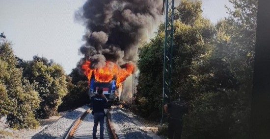 Va in fiamme, per cause da accertare, il locomotore di un treni della Sud Est fra Martina Franca e Crspiano, nei pressi del bosco Orimini: in salvo tutti i passeggeri presenti (una decina, oltre il macchinista).