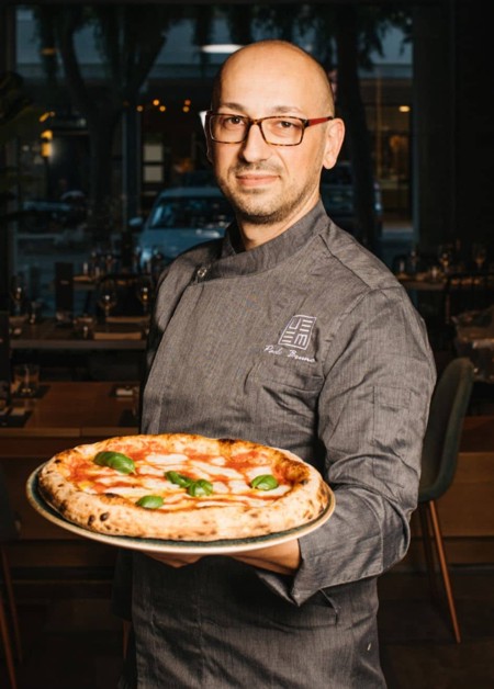 Con “Uemè” si è voluto mettere insieme le tre maestranze che si fondono nel concept: il maestro pizzaiolo, il maestro in cucina (ovvero il cuoco), e il maestro al bar (il barman).