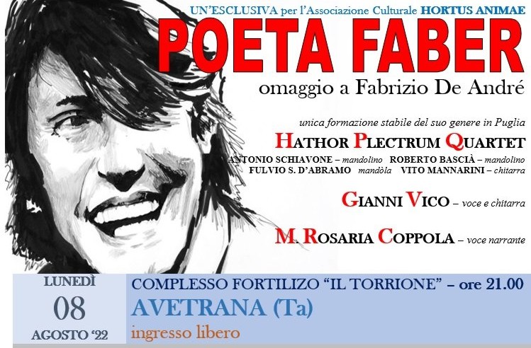 Queste parole furono pronunciate dall’immortale artista e poeta Fabrizio De Andrè, a cui l’associazione culturale Hortus Animae ha dedicato, presso il complesso fortilizio "Il Torrione", la serata dell'8 agosto scorso.