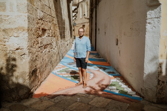 La lingua d’asfalto di via Casalino, vera e propria cicatrice che rompe l'armonia delle basole del centro storico, è diventata grazie all’artista Mino di Summa un’opera d’arte a cielo aperto che racconta Francavilla Fontana