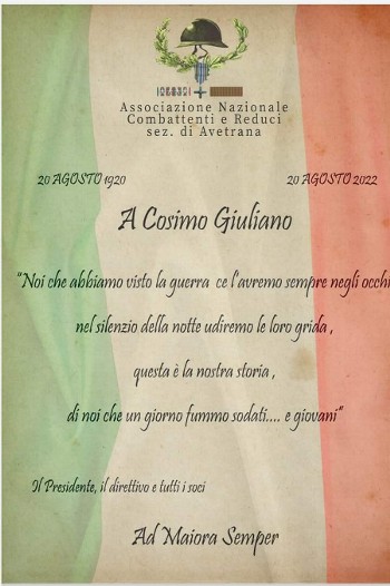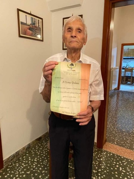 Cosimo Giuliano. Si tratta di un reduce della Seconda Guerra Mondiale. In un video diffuso attraverso i social, il signor Giuliano ha voluto ricordare quella sua esperienza nel conflitto mondiale.