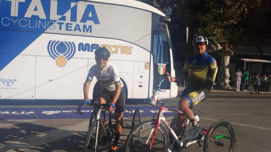 Sull’impegnativo circuito di Avezzano, il campione manduriano sta correndo, in questo momento, la prova in linea dei campionati italiani di paraciclismo.