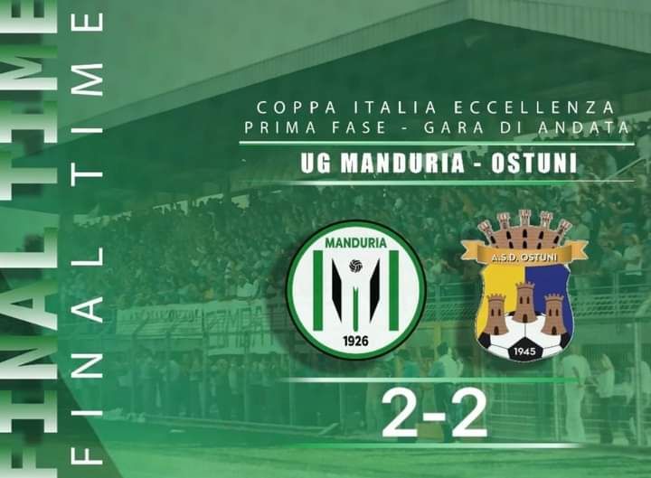 NOTE: ammoniti: Albaqui, Pizzoleo, Koume-Dibi, Garbetta. Angoli: 11 a 5 per il Manduria. Recuperi: 1’ e 5’. Al 12’ s.t. Il Manduria ha fallito un rigore con Cavaliere che ha calciato fuori.