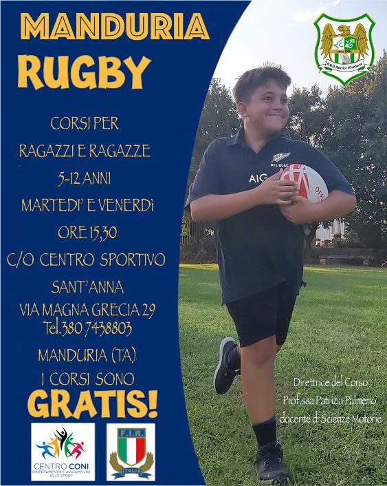 In arrivo il rugby a Manduria, uno sport di tradizione anglosassone che si sta diffondendo sempre di più in Italia, soprattutto tra i bambini piccoli. Quello che piace di questo sport è il suo spirito educativo e rispettoso dell'avversario. E' proprio questo spirito che lo rende tanto diverso dal calcio. Nicola De Cilia, nel suo libro “Pedagogia della palla ovale”, analizza proprio questo aspetto educativo del rugby: “Pochi sport come il rugby sembrano avere a cuore la formazione