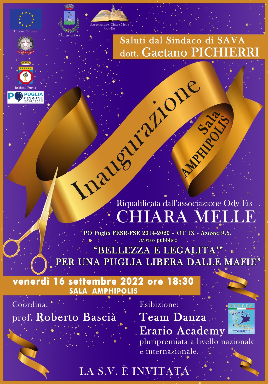 Alla presenza del sindaco Gaetano Pichierri, venerdì (16 settembre), alle ore 18,30, sarà inaugurata la sala Amphipolis, uno spazio pubblico molto significativo per il paese di Sava che è stato oggetto di importanti lavori di riqualificazione durante questi mesi estivi.
