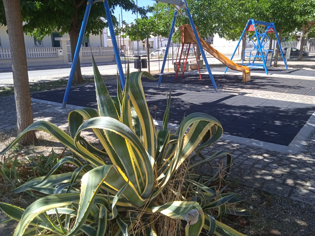 Due piante di agave nella piazza intitolata a Elisa Springer e nei pressi dei giochi per i bambini.