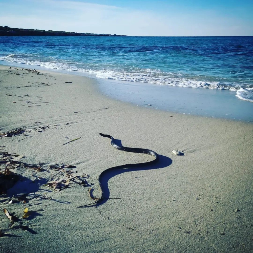 A San Foca un grosso serpente sulla battigia