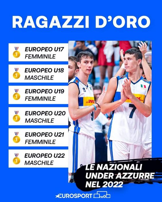 Come la Nazionale di coach De Giorgi! L'Italia Under 20 batte infatti la Polonia (3-2), grazie al 15-6 del tie-break, e si aggiudica il titolo europeo di categoria, trascinata dalle schiacciate di Alessandro Bovolenta - classe 2004 e figlio del compianto Vigor - dai voli in ricezione/difesa di Gabriele Laurenzano e dalle bordate di Luca Porro dai nove metri. Gli Azzurrini, allenati da Matteo Battocchio, coronano così un 2022 da favola per le Nazionali. A livello under, negli ultimi tre mesi l'Italia ha vinto infatti sei titoli europei: tutti quelli che erano stati messi in palio!