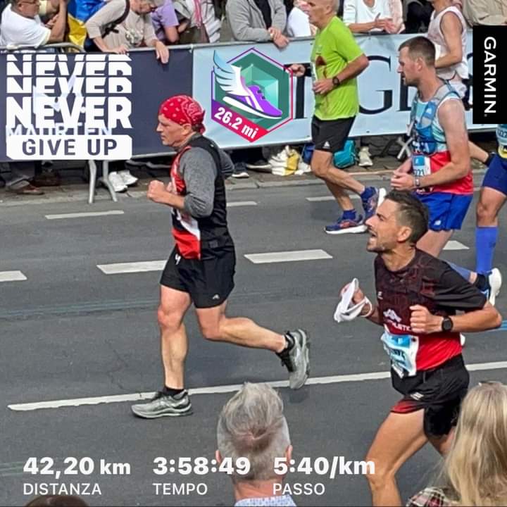 Ha coperto gli oltre 42 km con un tempo di 3h 58 minuti e 49 secondi