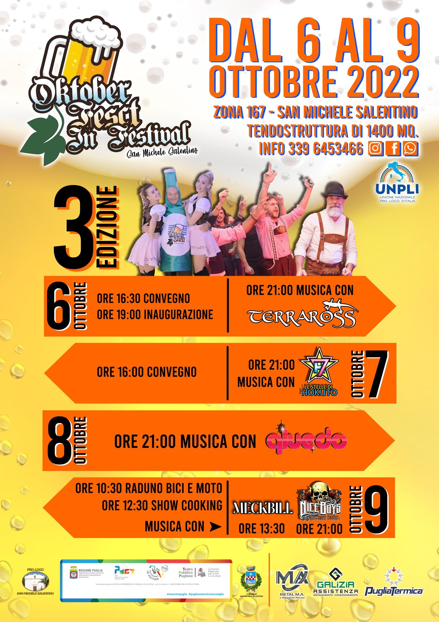 La Pro Loco San Michele Salentino organizza la IIIª edizione dell’ “Oktoberfesct in festival” 2022 dal 6 al 9 ottobre presso la zona 167 di San Michele Salentino.