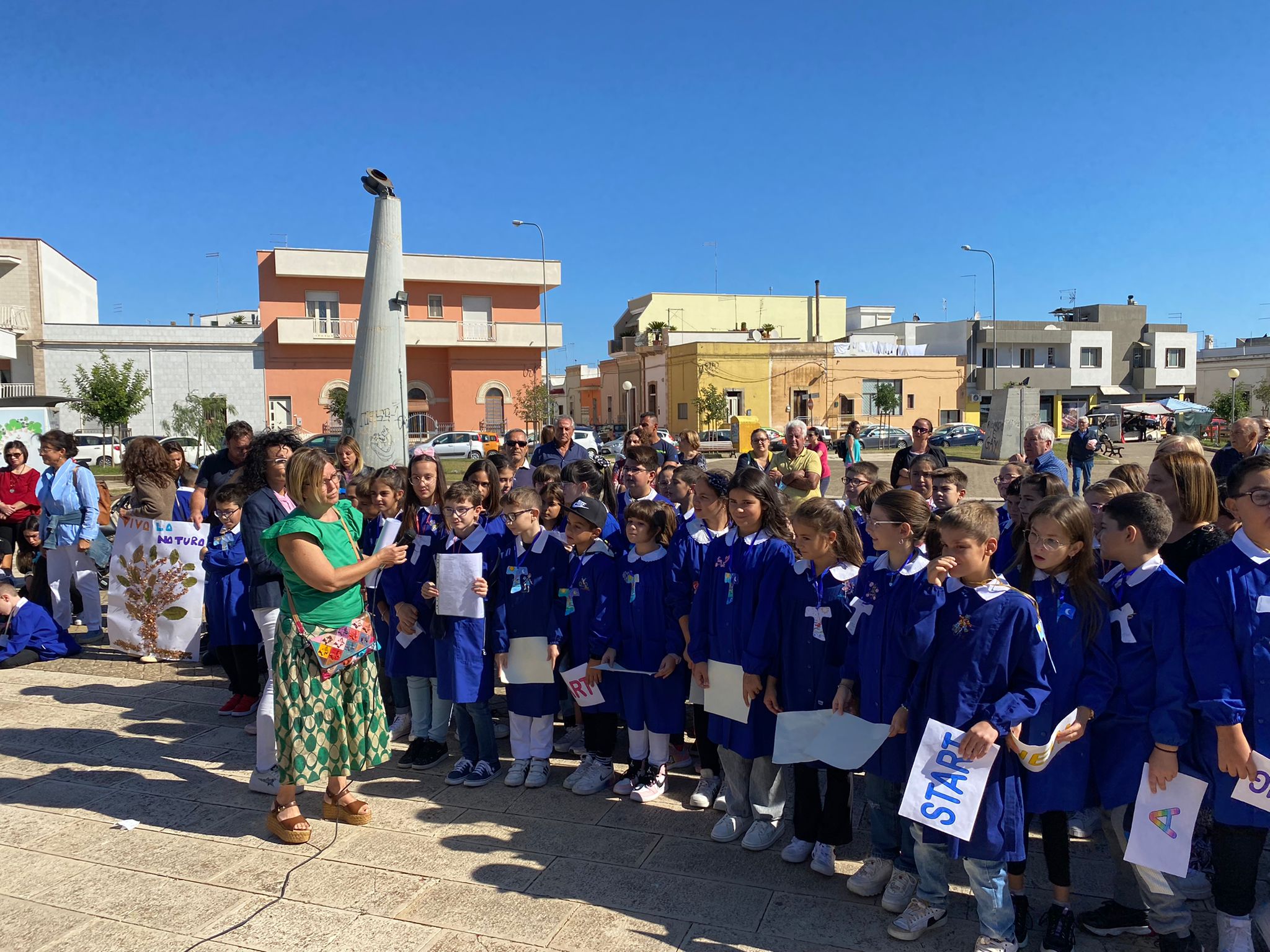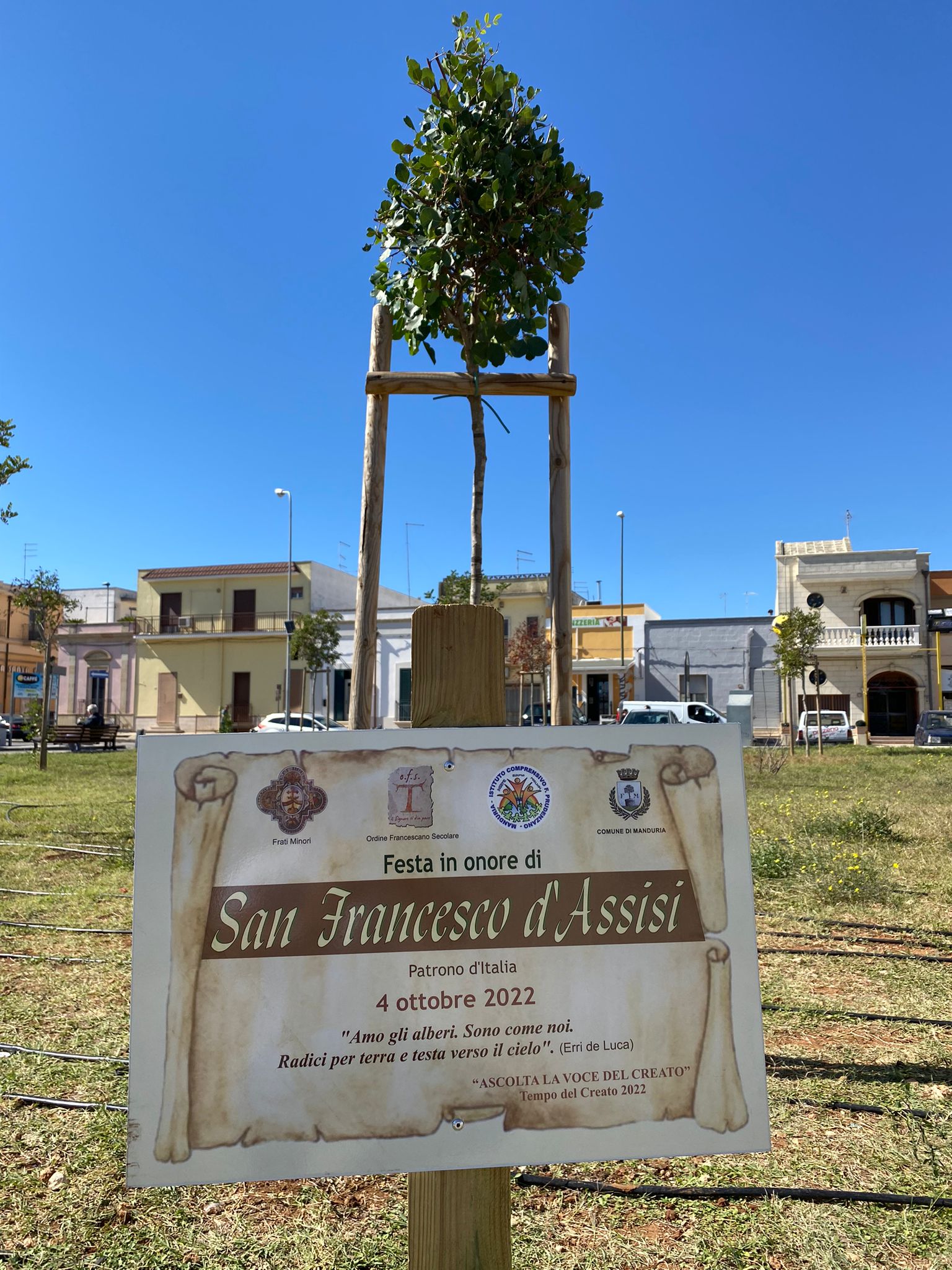 L’iniziativa, promossa dai Frati Minori e dall’Ordine Francescano Secolare, ha coinvolto le quinte classi della scuola primaria dell’istituto comprensivo “Prudenzano”. Piantato un albero in piazza Giovanni XXIII