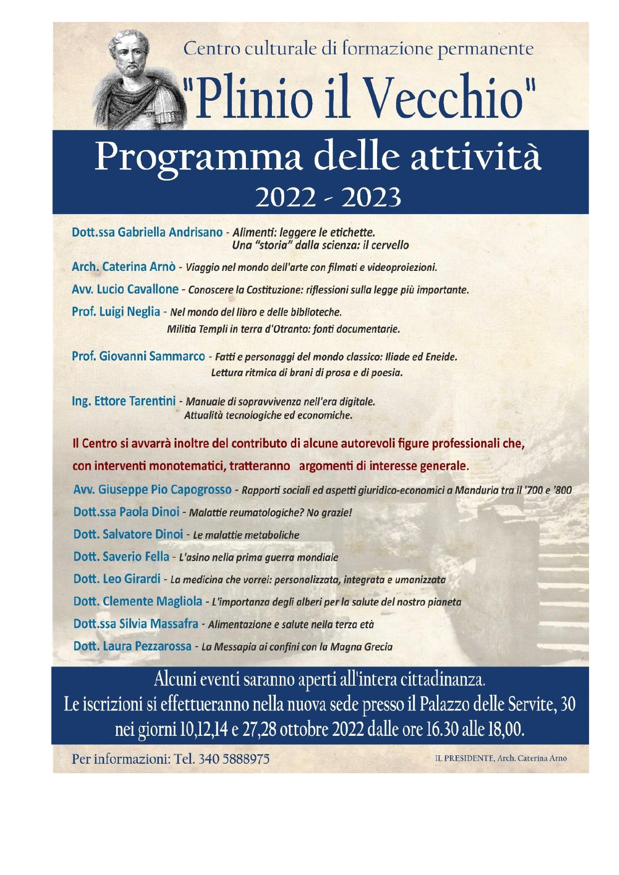 Il centro culturale di formazione “Plinio il Vecchio” inizierà il nuovo anno i primi giorni di novembre.