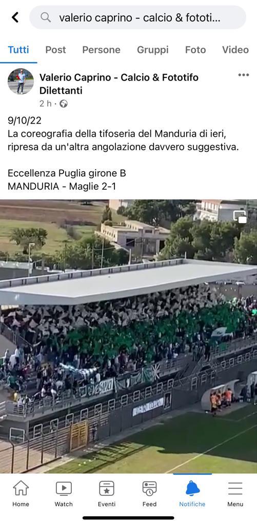 «La società intende ringraziare, sentitamente, gli splendidi i tifosi che, una volta di più,hanno dimostrato un affetto ed un attaccamento straordinari ai colori bianco verdi» si legge in una nota della società. «In occasione del match casalingo, disputato e vinto contro il Maglie, il pubblico manduriano si è, davvero, superato. Affluenza, colori, sostegno, coreografie degni di ben altre categorie.