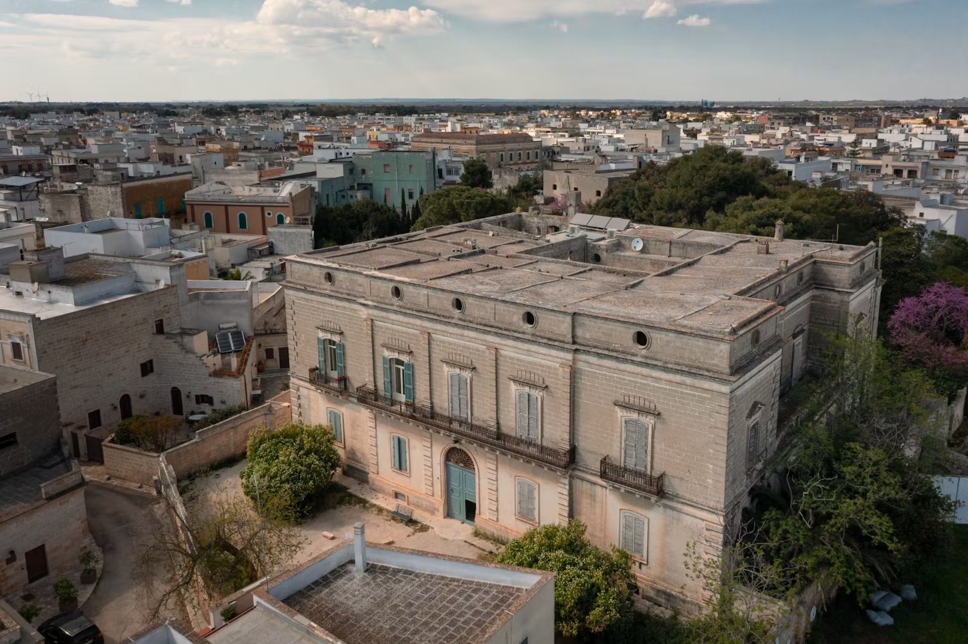 La storia del palazzo, costruito nel 1881 in occasione delle nozze di donna Rosa Sabini di Altamura e di don Tommaso Schiavoni di Manduria, é legata alla nascita della produzione del vino Primitivo, in quanto la sposa portò in dote le barbatelle del famoso nettare rosso, alcolico e corposo. L'edificio è stato abitato per oltre un secolo dagli eredi della famiglia: disabitato e trascurato negli ultimi decenni, è stato restaurato dalla nuova proprietaria con cura e rispetto per la storia che rappresenta.