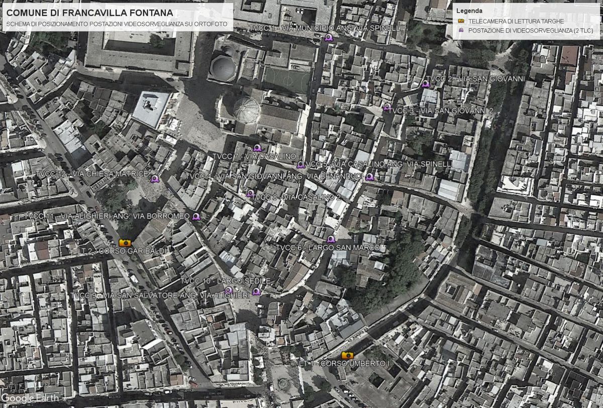 In base al progetto saranno installate 24 telecamere ad alta risoluzione nei punti più critici del centro storico di Francavilla Fontana e due telecamere con lettura targhe, sempre ad alta risoluzione, rispettivamente in corso Garibaldi e corso Umberto I