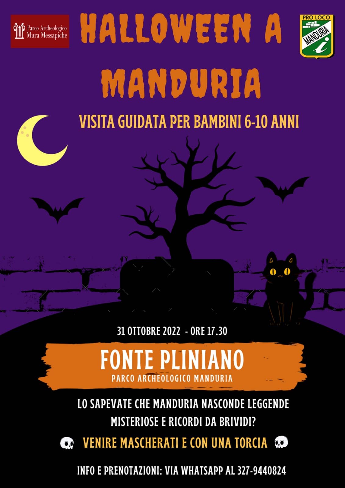 È per questo che la Pro Loco di Manduria propone un’offerta irrinunciabile per tutti i piccoli amanti del brivido che vorranno sfidare le proprie paure inoltrandosi nei meandri di uno dei punti più misteriosi di Manduria, il Fonte Pliniano, il cui antro, già due millenni addietro, era considerato dai sacerdoti messapici luogo di culto dalle proprietà magiche e le cui pareti custodiscono, ancora oggi, echi di misteriosi riti ancestrali.