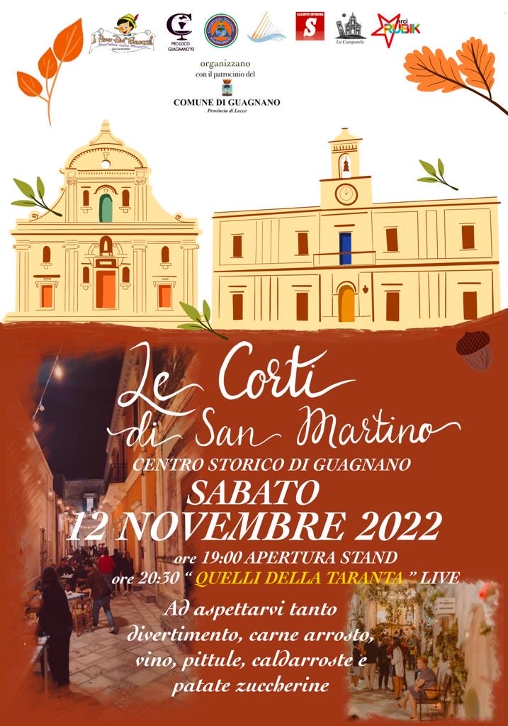 Sabato 12 novembre, nel centro storico di Guagnano, in particolare in via Roma, vico San Luigi e vico Asilo, ci sarà l’evento “Le Corti di San Martino”.