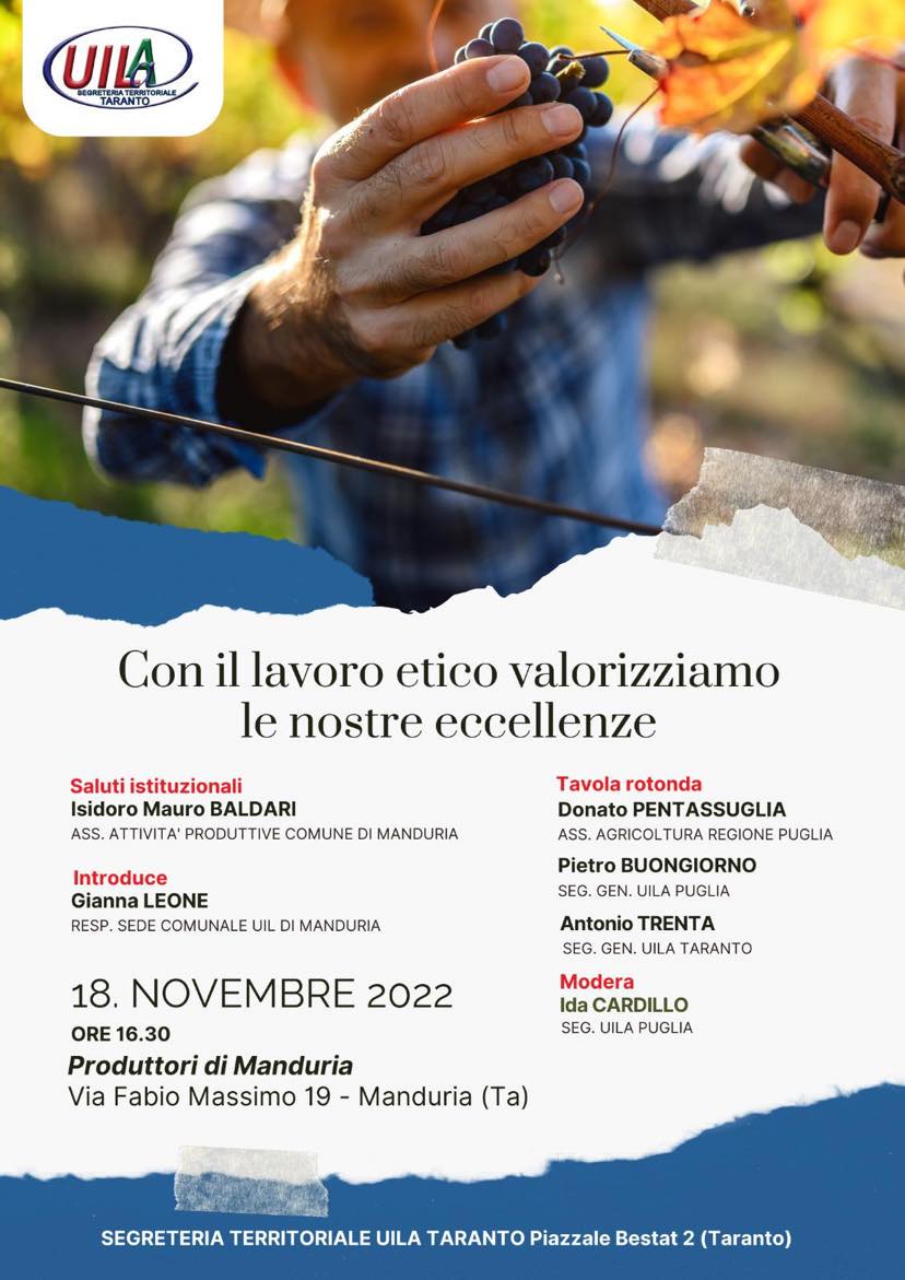 Si svolgerà questa sera nella sede dei Produttori di Manduria. Interverranno, tra gli altri, l’assessore all’Agricoltura della Regione Puglia, Donato Pentassuglia, ed il segretario generale della Uila Puglia Pietro Buongiorno