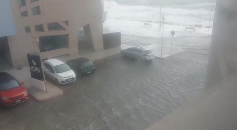 A Gallipoli il lungomare Galileo Galilei e le strade limitrofe sono state completamente invase dall’acqua del mare.