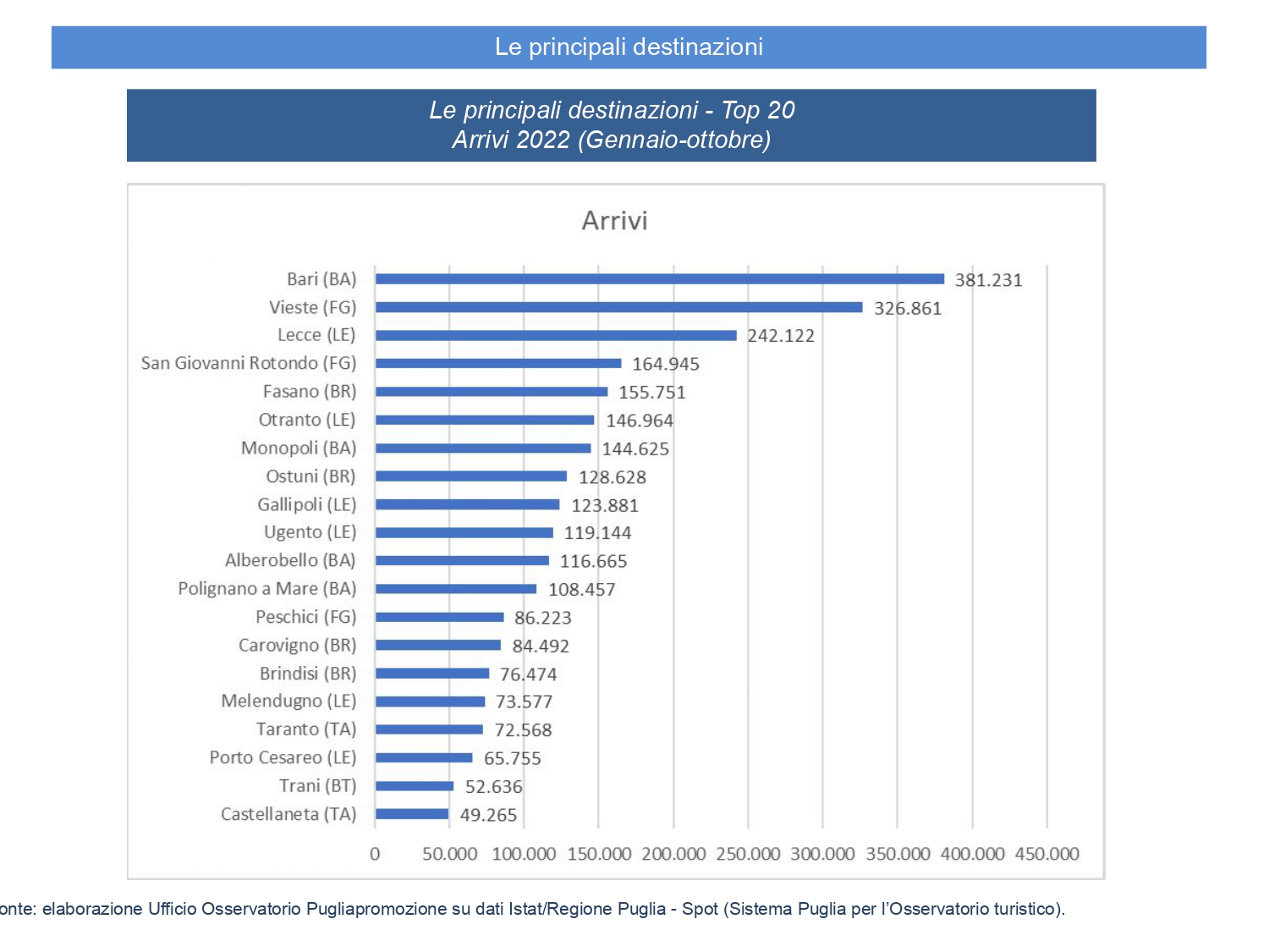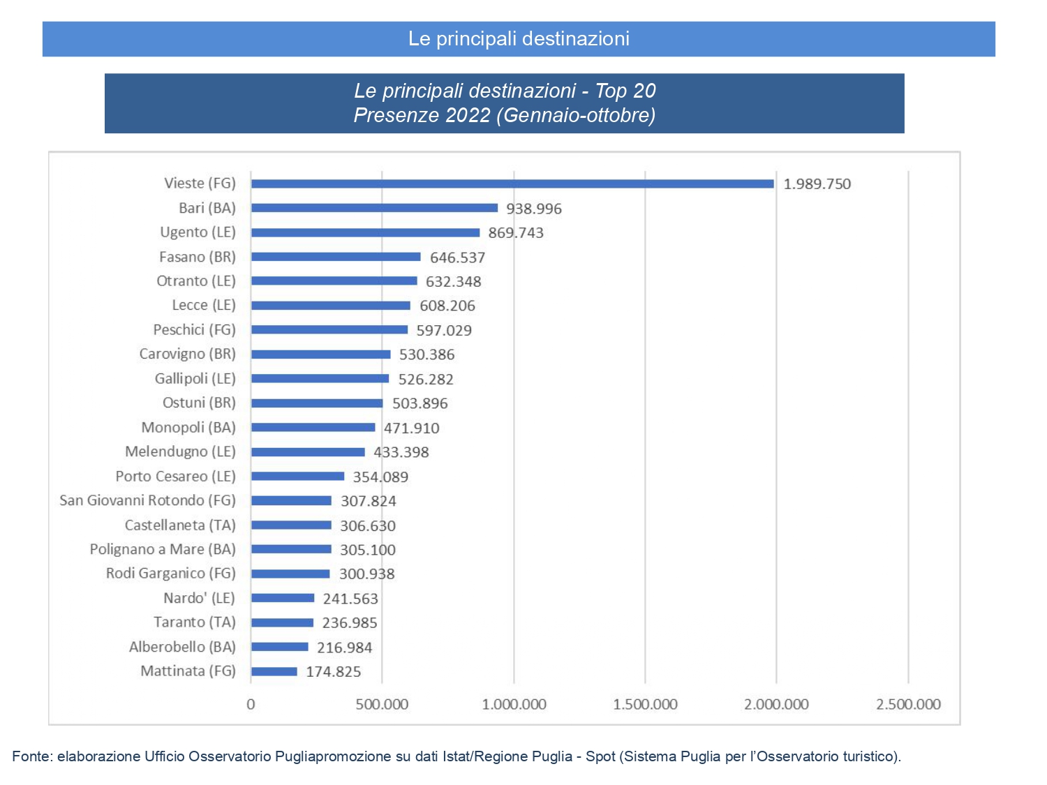 Dai grafici che pubblichiamo, si evince come Manduria non sia nella top 20 delle località turistiche pugliesi con più presenze.