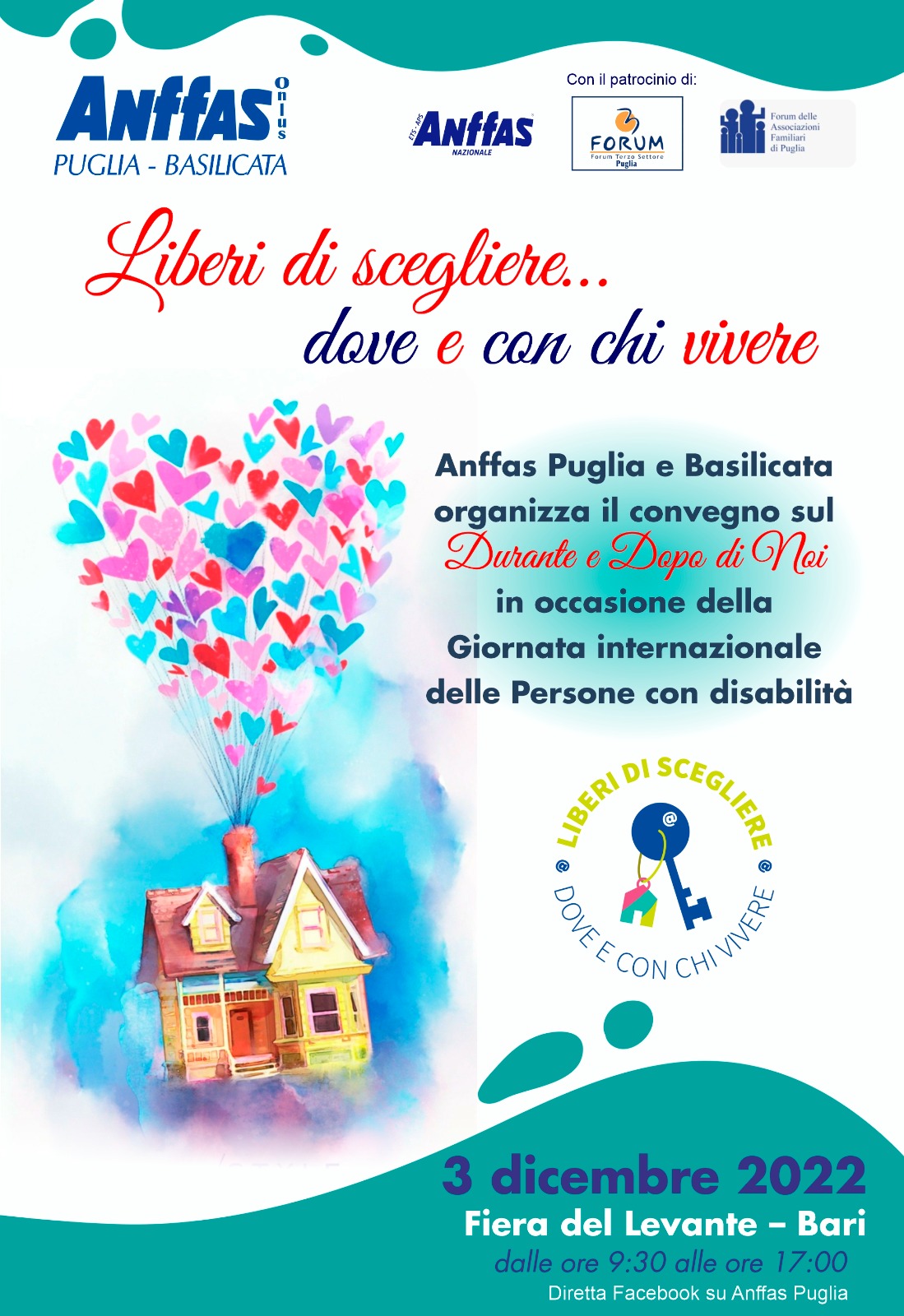 “Liberi di scegliere…dove e con chi vivere” è il titolo del convegno organizzato dall’Anffas Puglia e Basilicata per il prossimo 3 dicembre, ispirato all’art. 19 della Convenzione ONU sui Diritti delle Persone con disabilità, che demarca l’importanza della facoltà di decidere su un aspetto fondamentale della propria esistenza: l’abitare.