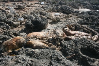 carcassa sugli scogli, sino a frantumarla.Manca la parte della testa e proprio questo particolare ha reso sinora molto difficoltoso il lavoro dei veterinari della Asl, che hanno tentato di risalire alla specie dell’esemplare, anche inviando le foto a vari enti competenti (come l’Università di Bari).