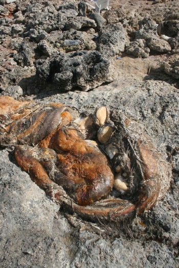 carcassa sugli scogli, sino a frantumarla.