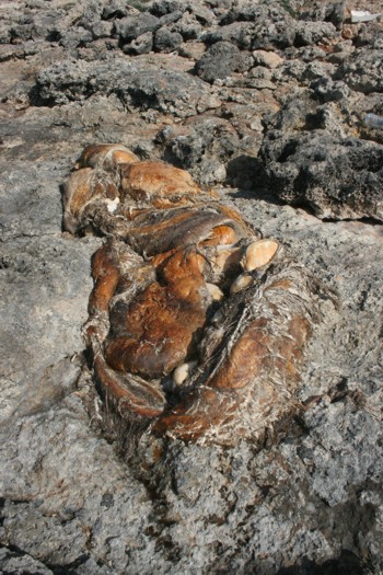 Commerciale Chidro e la salina di Torre Colimena, più precisamente in località “Quota 11”.Gran parte di ciò che resta dell’esemplare si era incastrato all’interno del tratto della scogliera. Impressionante la dimensione di questo cetaceo e, in particolare, degli anelli delle vertebre. Un’altra consistente parte, probabilmente una parte interna dello stomaco, è stata trovata a diverse decine di metri. E’ molto probabile, pertanto, che l’esemplare (una piccola balena? un capodoglio?) sia morto, per cause che sarà difficile interpretare, da tempo e che le tempeste dei giorni scorsi abbiamo sbattuto più volte la